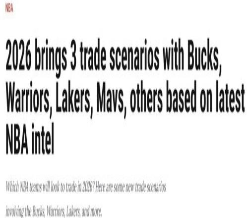 此外,洛杉磯湖人、金州勇士和森林狼均在尋求陣容深度的補(bǔ)強(qiáng),以提升西部季后賽競(jìng)爭(zhēng)力。即便是獨(dú)行俠和步行者兩隊(duì)均未躋身各自分區(qū)季后賽行列,也有明確通過交易改善球隊(duì)未來前景的需求。權(quán)威美媒《clutchpoints》的專欄記者布雷特·西格爾近日發(fā)文稱,根據(jù)他的消息源顯示,2026年交易截止日前,有可能達(dá)成的3筆交易,涉及了雄鹿、勇士、湖人、獨(dú)行俠等隊(duì)。一起來看看。