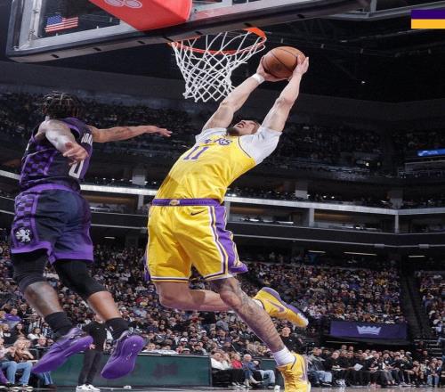 末節(jié)湖人連得7分后,在8分03秒追到95-102,國王請求暫停。暫?;貋韲踉俅螌⒎植罾_到兩位數(shù),艾頓和東契奇連拿6分,湖人104-112再次打停國王。國王一波連得10分,122-104終結(jié)了比賽懸念。最終全場比賽結(jié)束,國王124-112贏下勝利。